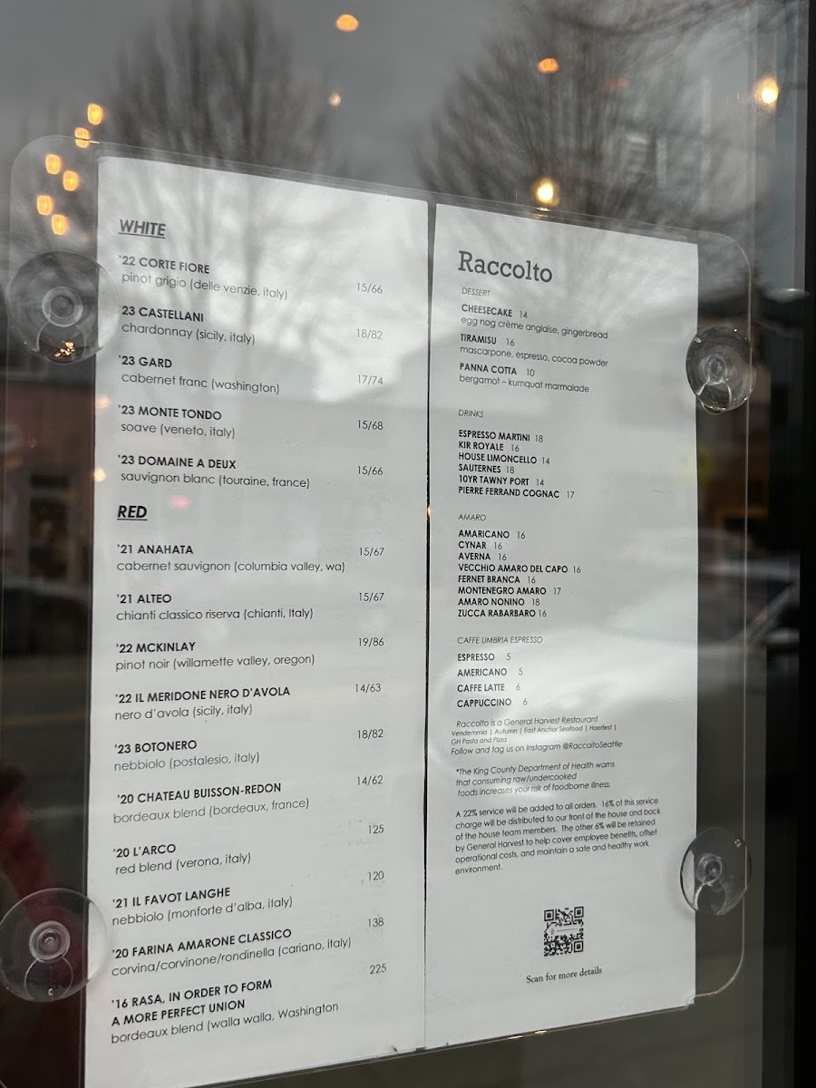 Welcome to Raccolto, a culinary gem situated in West Seattle at 4147 California Ave SW. This exquisite restaurant promises an unforgettable dining experience with its refined a la carte menu, featuring handmade pasta and seasonal ingredients that shine in each dish.